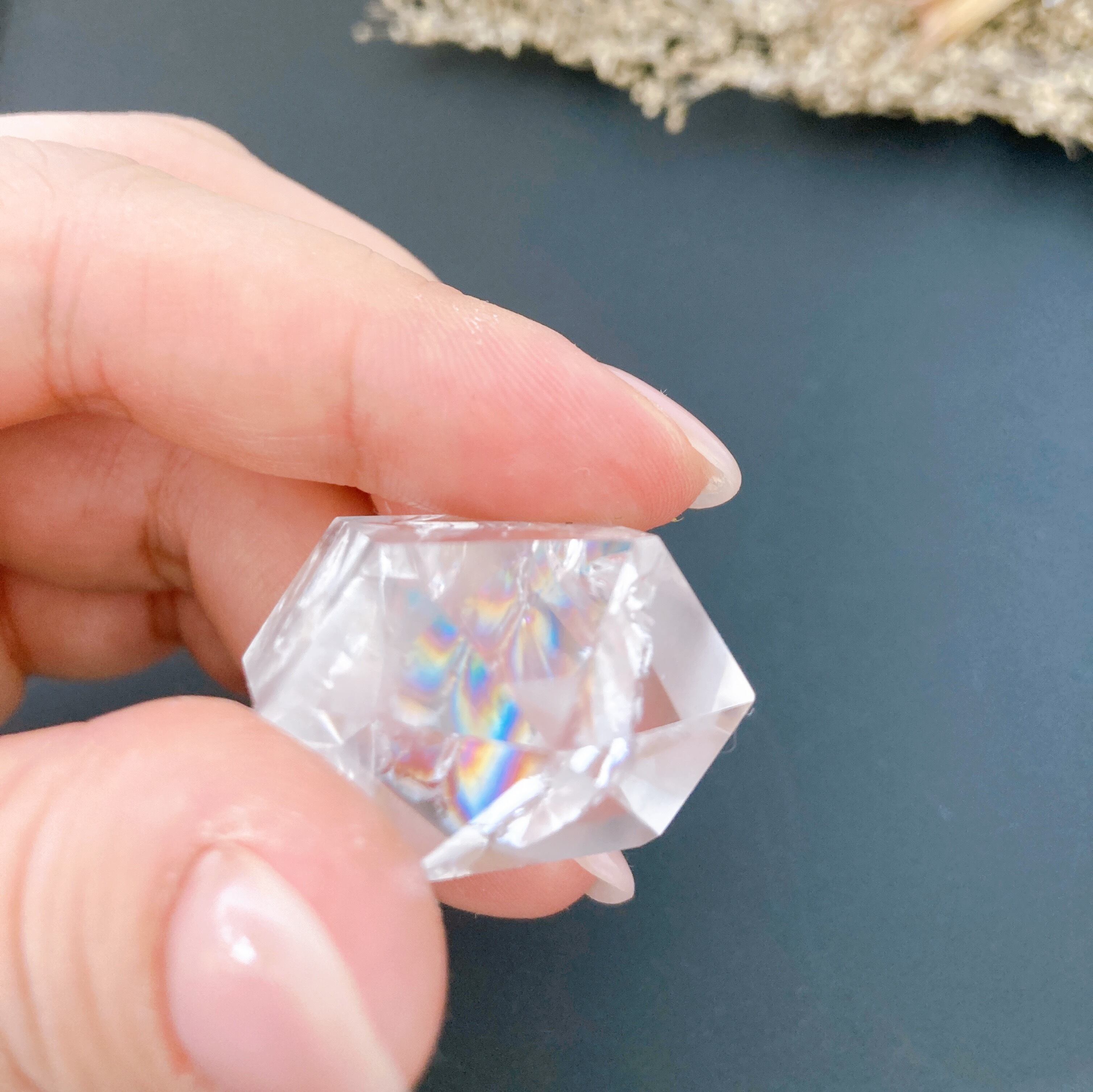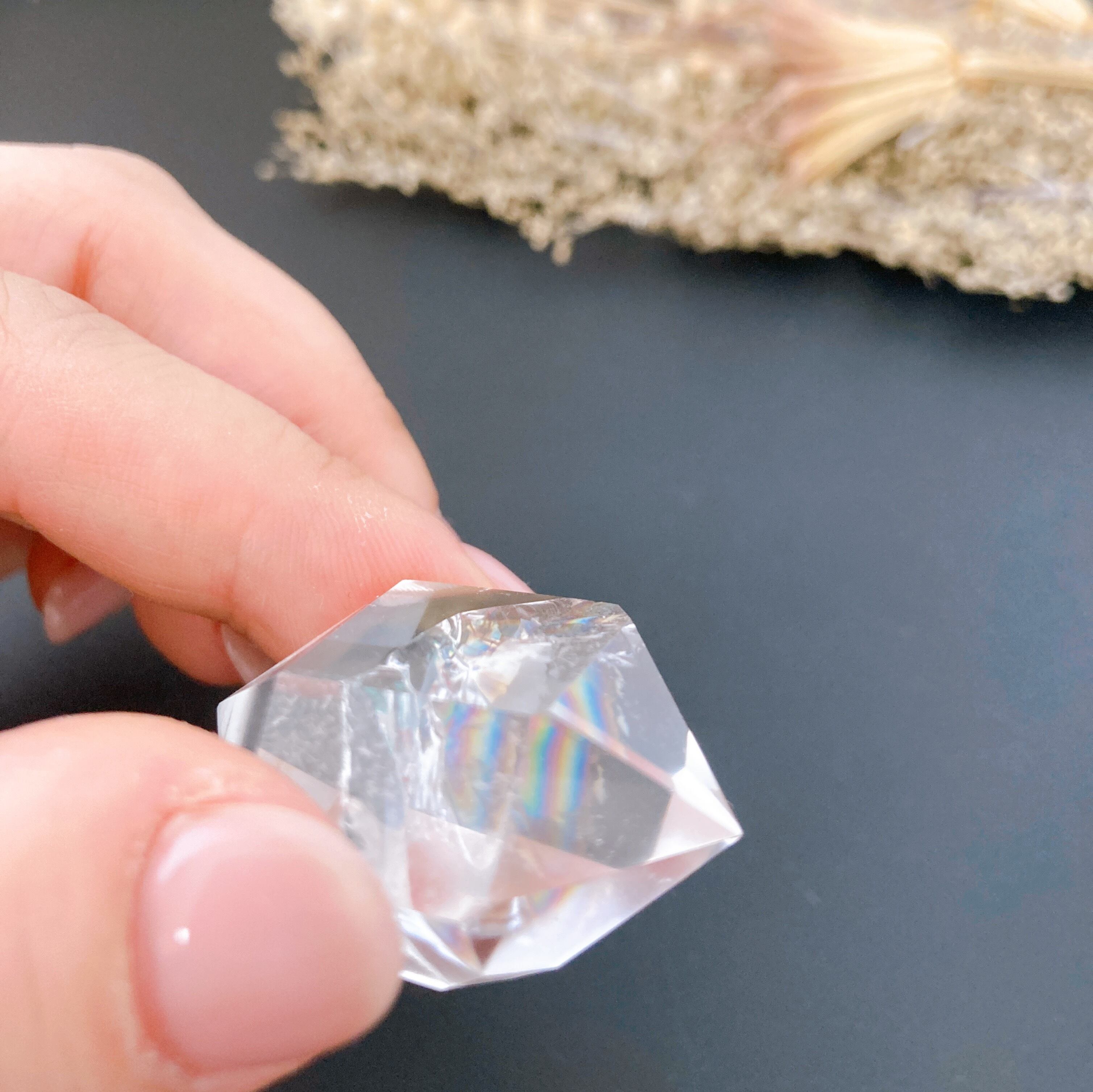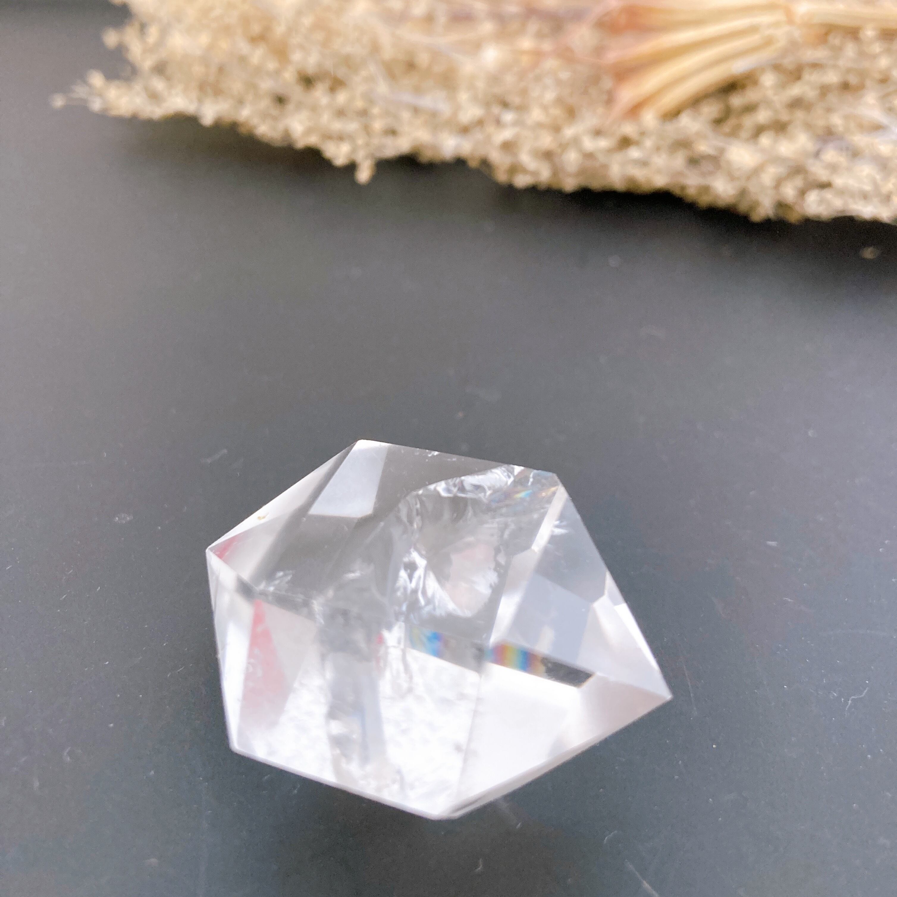 ダブルポイントは、両剣水晶、両尖水晶などと呼ばれます。強い浄化能力を持つ水晶とされ、ポイントの片側から悪い気を吸収し、反対側のポイントから浄化した気を放出するといわれています。 場の浄化をはじめとして、乱れた精神や感情の浄化にも効果を発揮するとされています。
