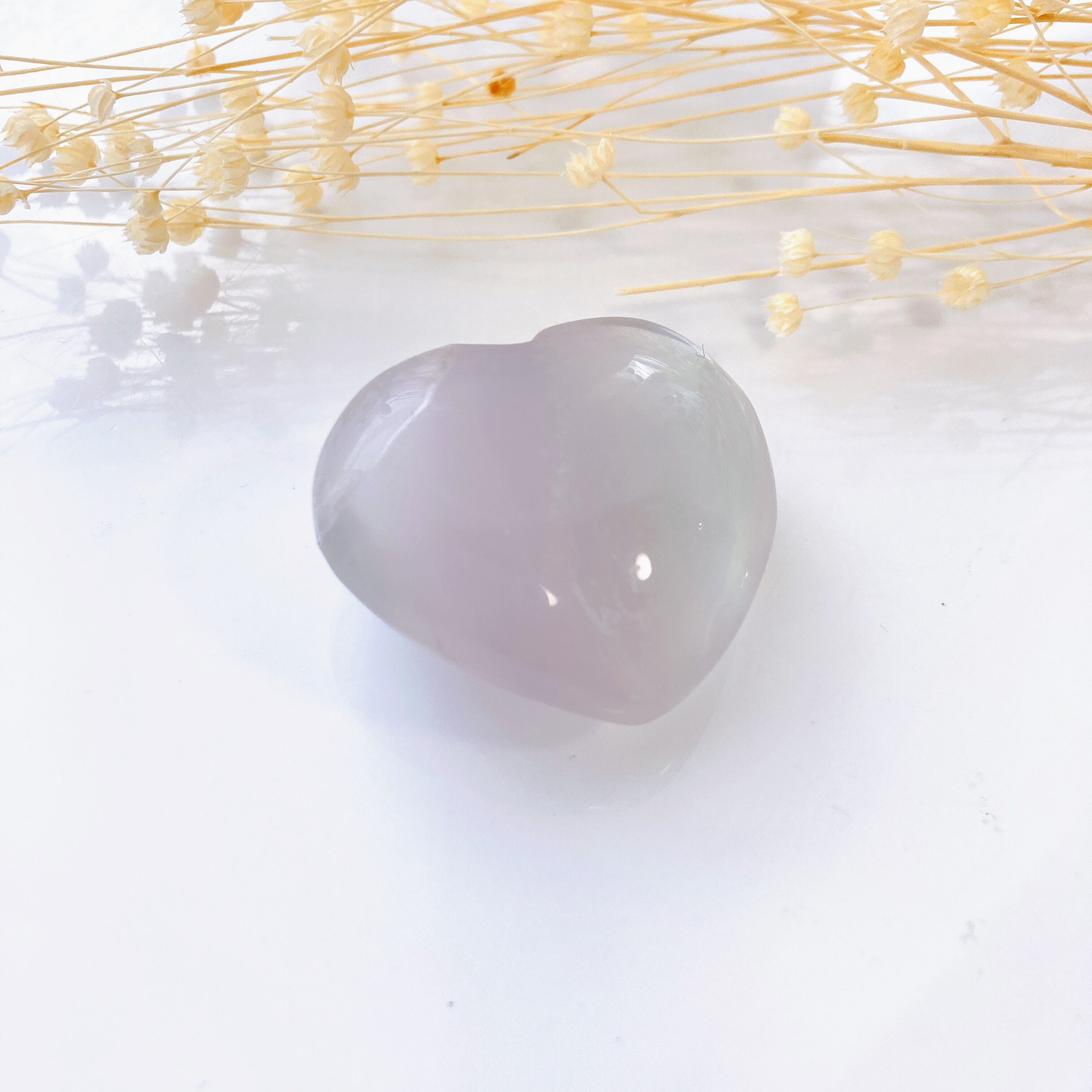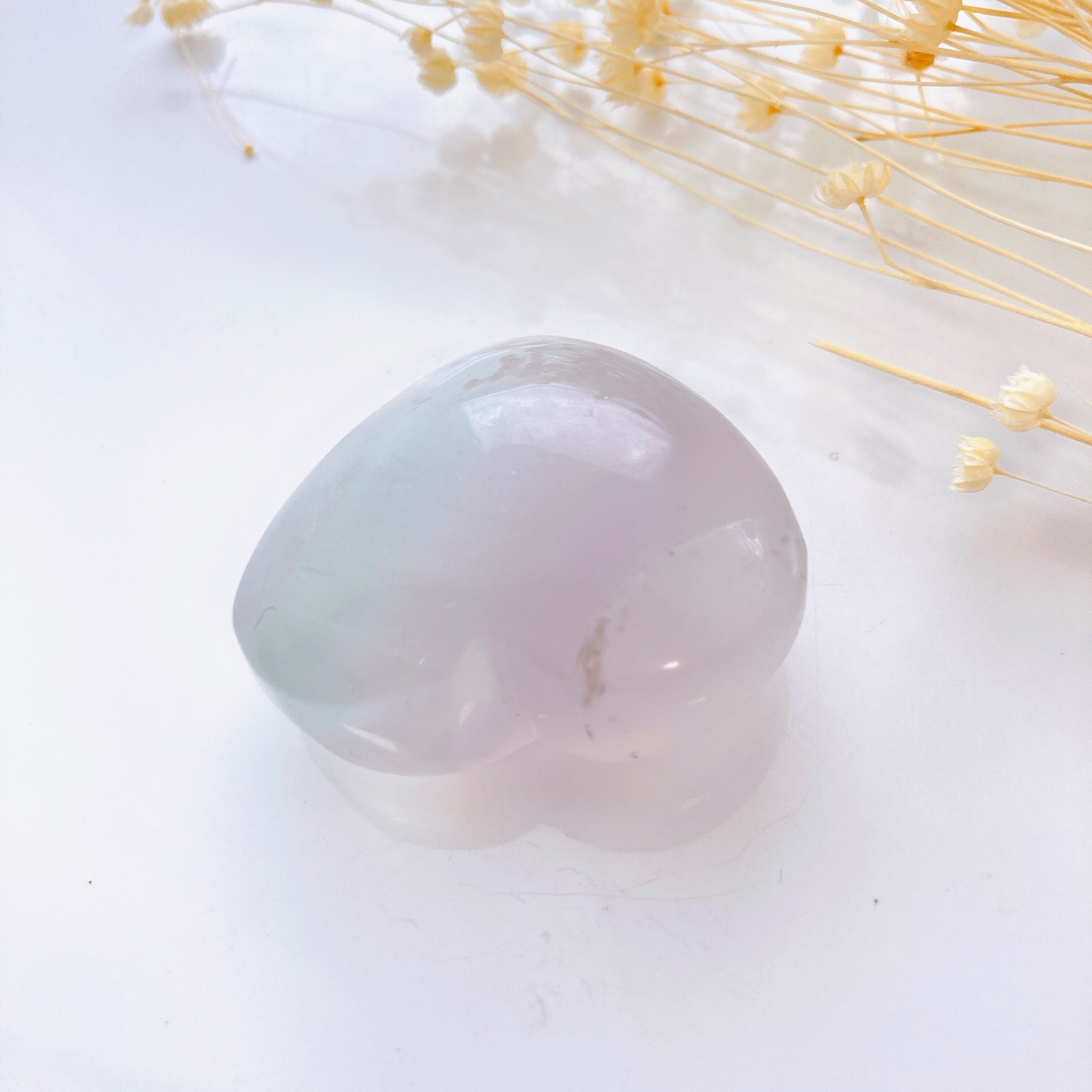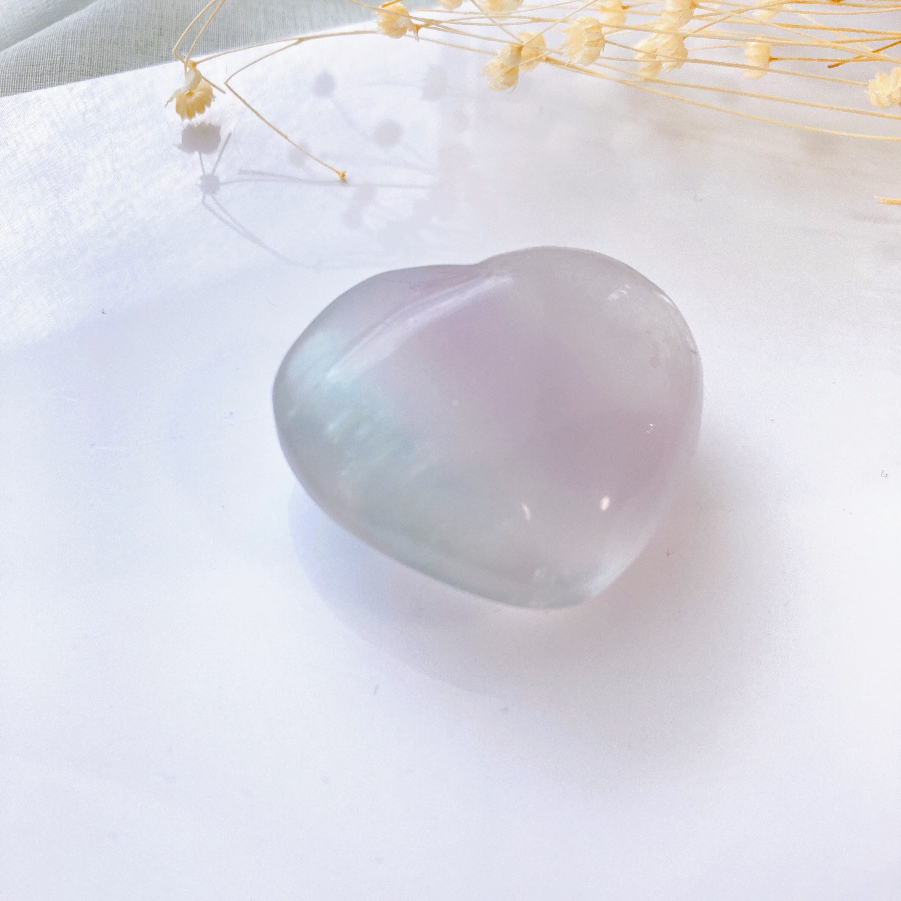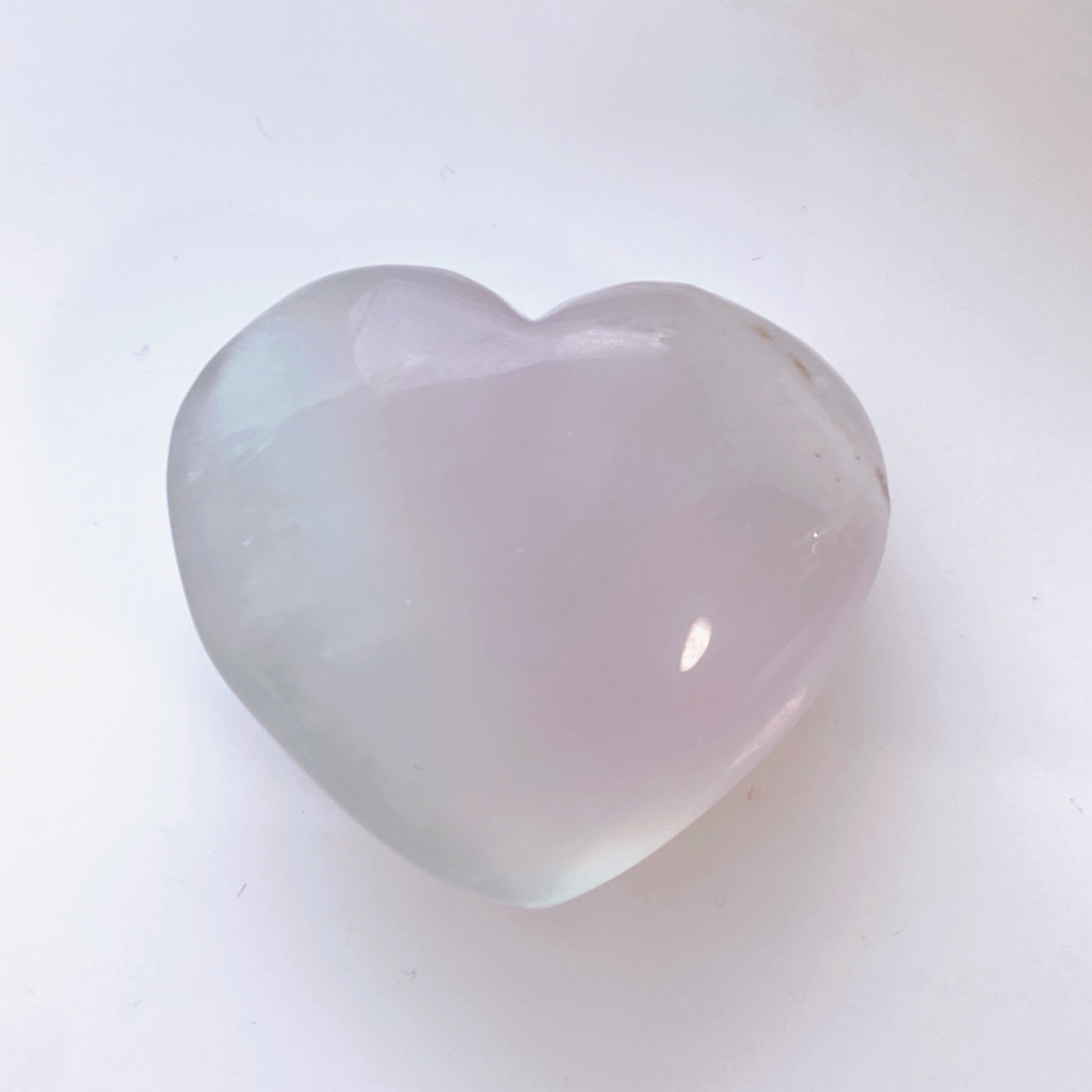 薄紫から水色っぽいグラデーションが美しいぷっくりハートのフローライト。