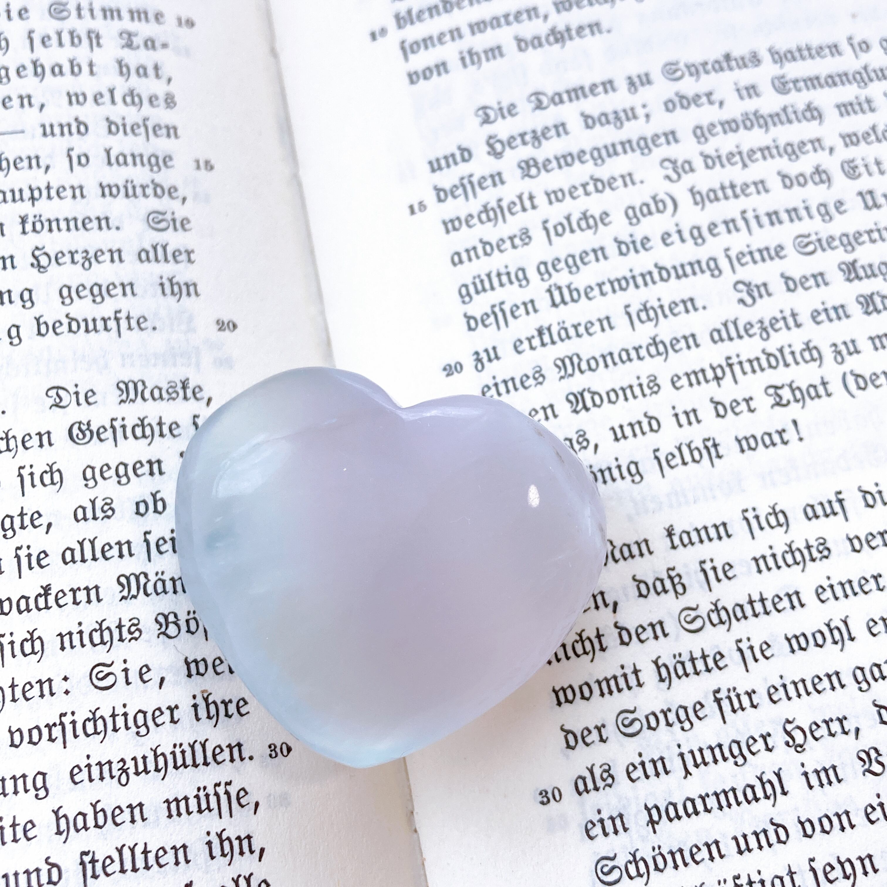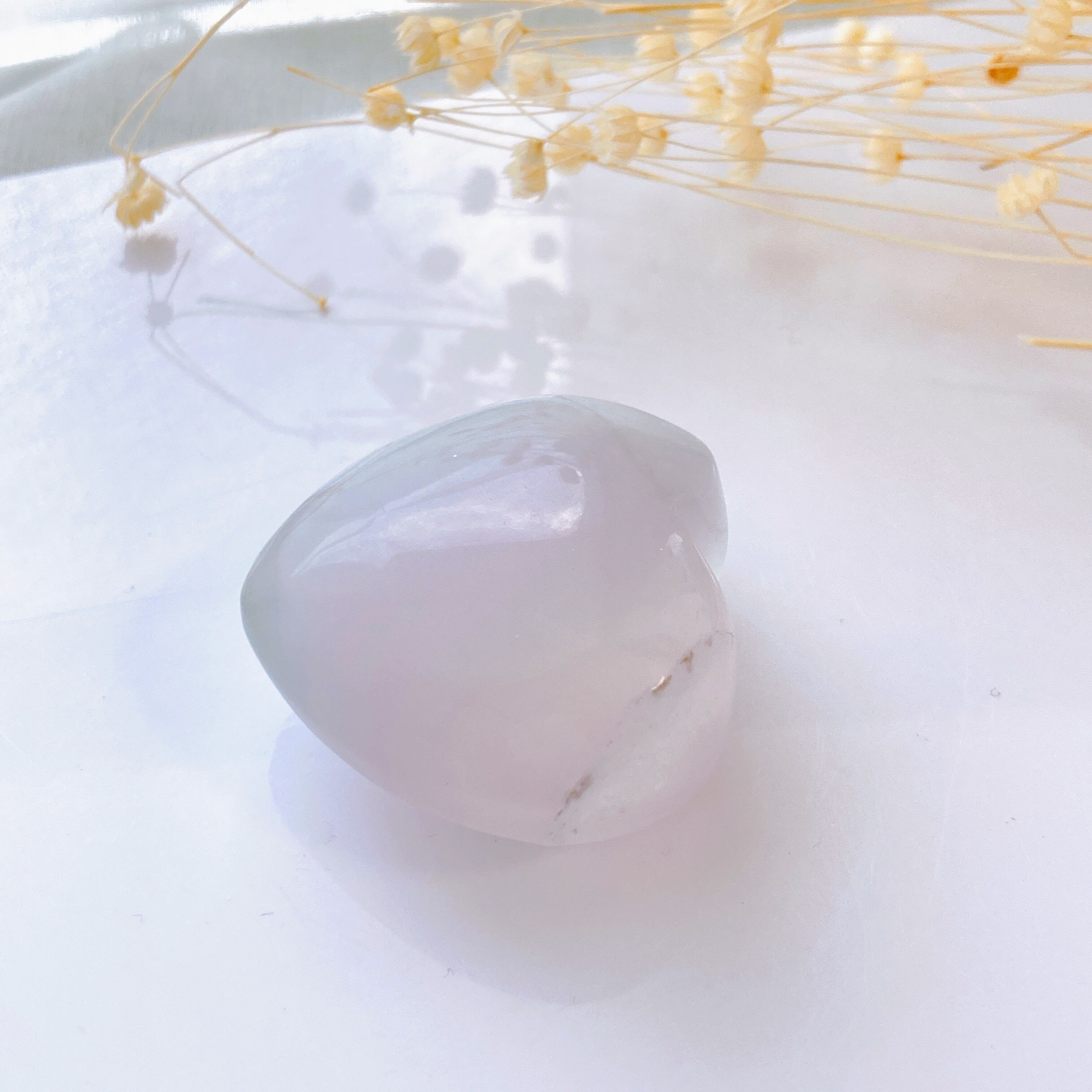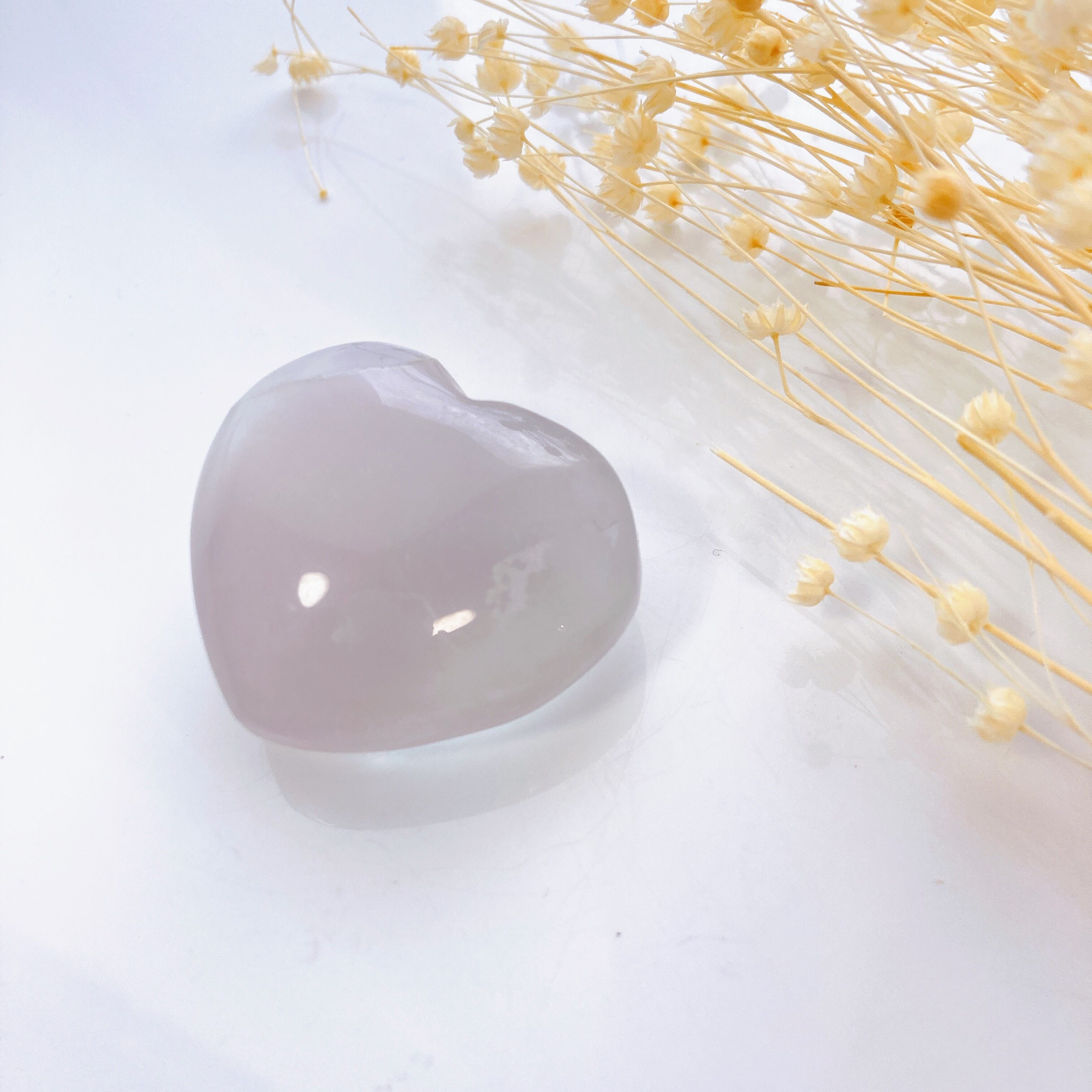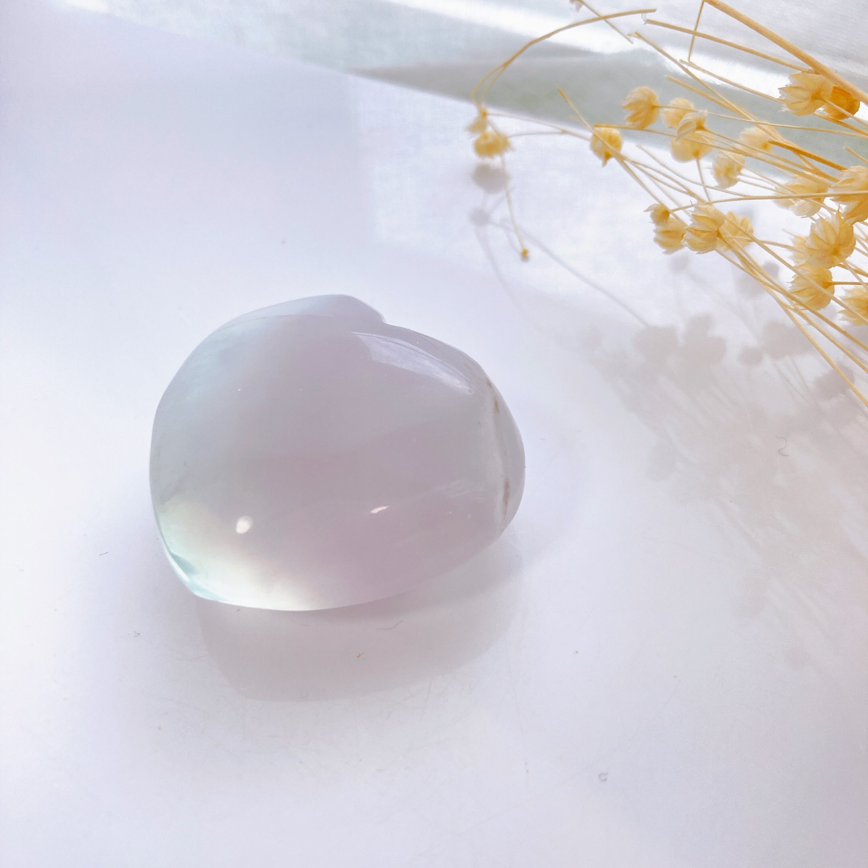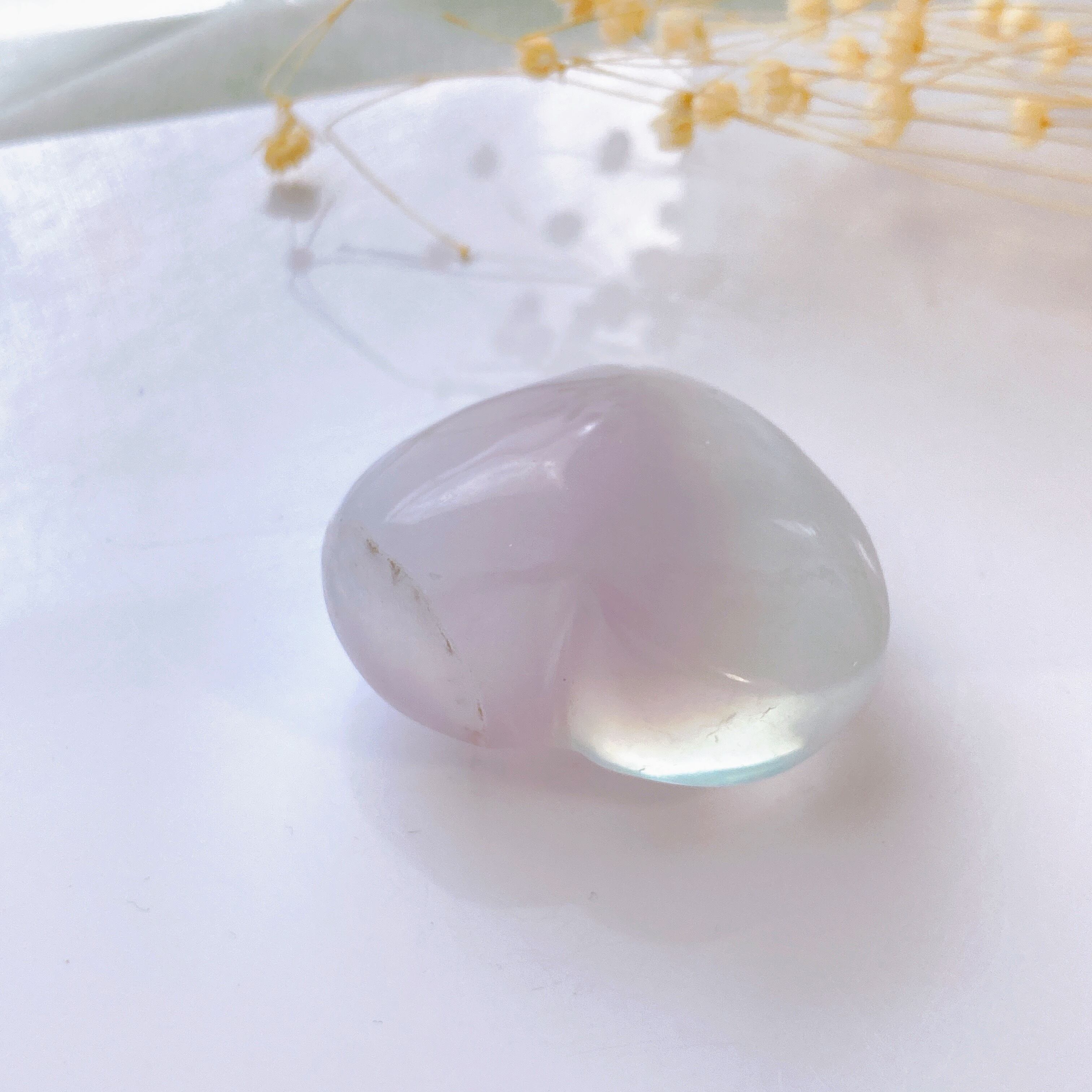 薄紫から水色っぽいグラデーションが美しいぷっくりハートのフローライト。