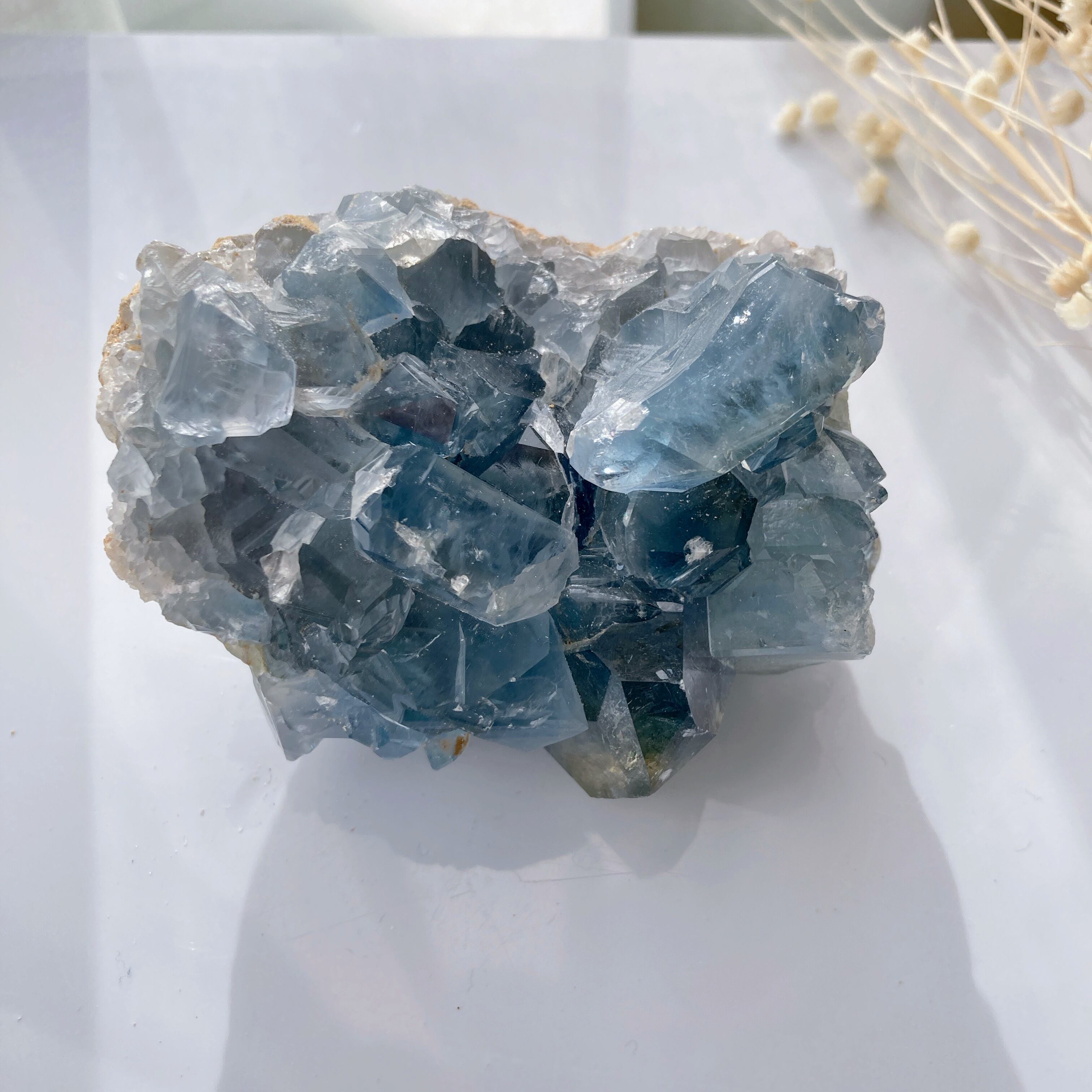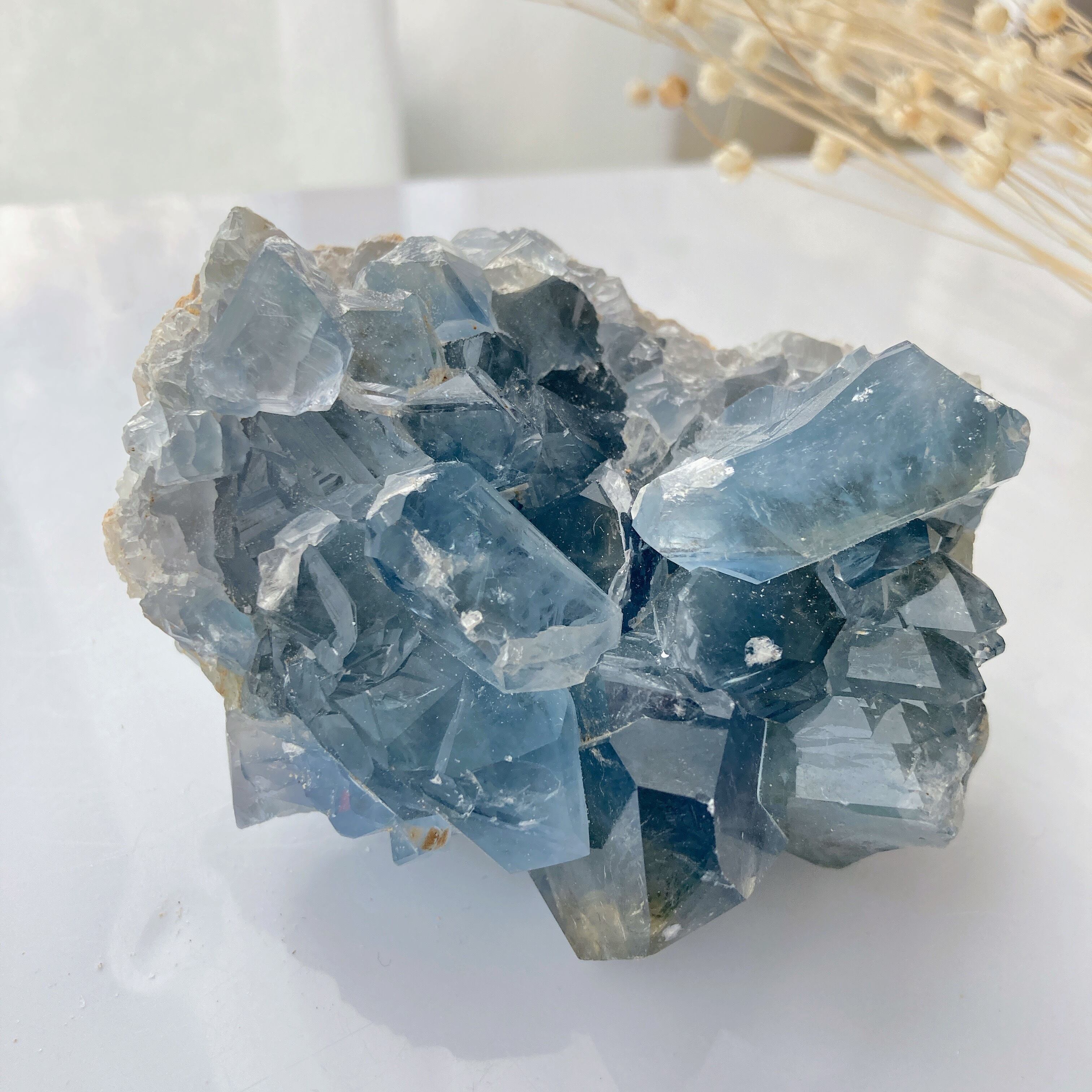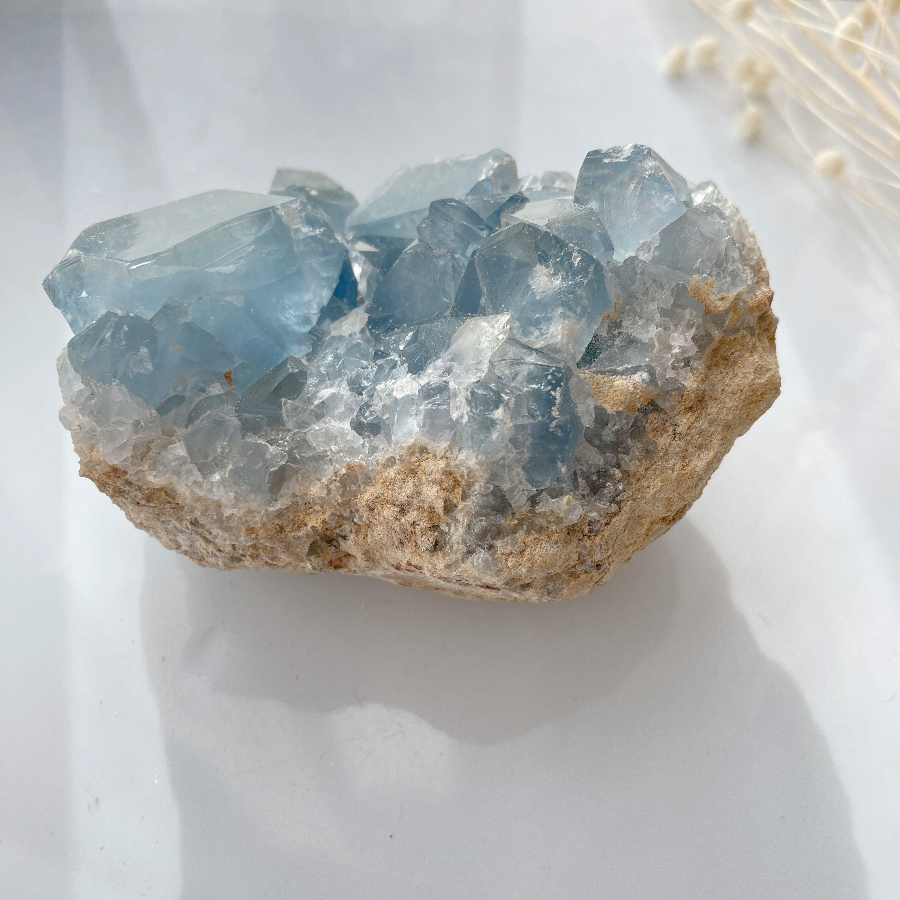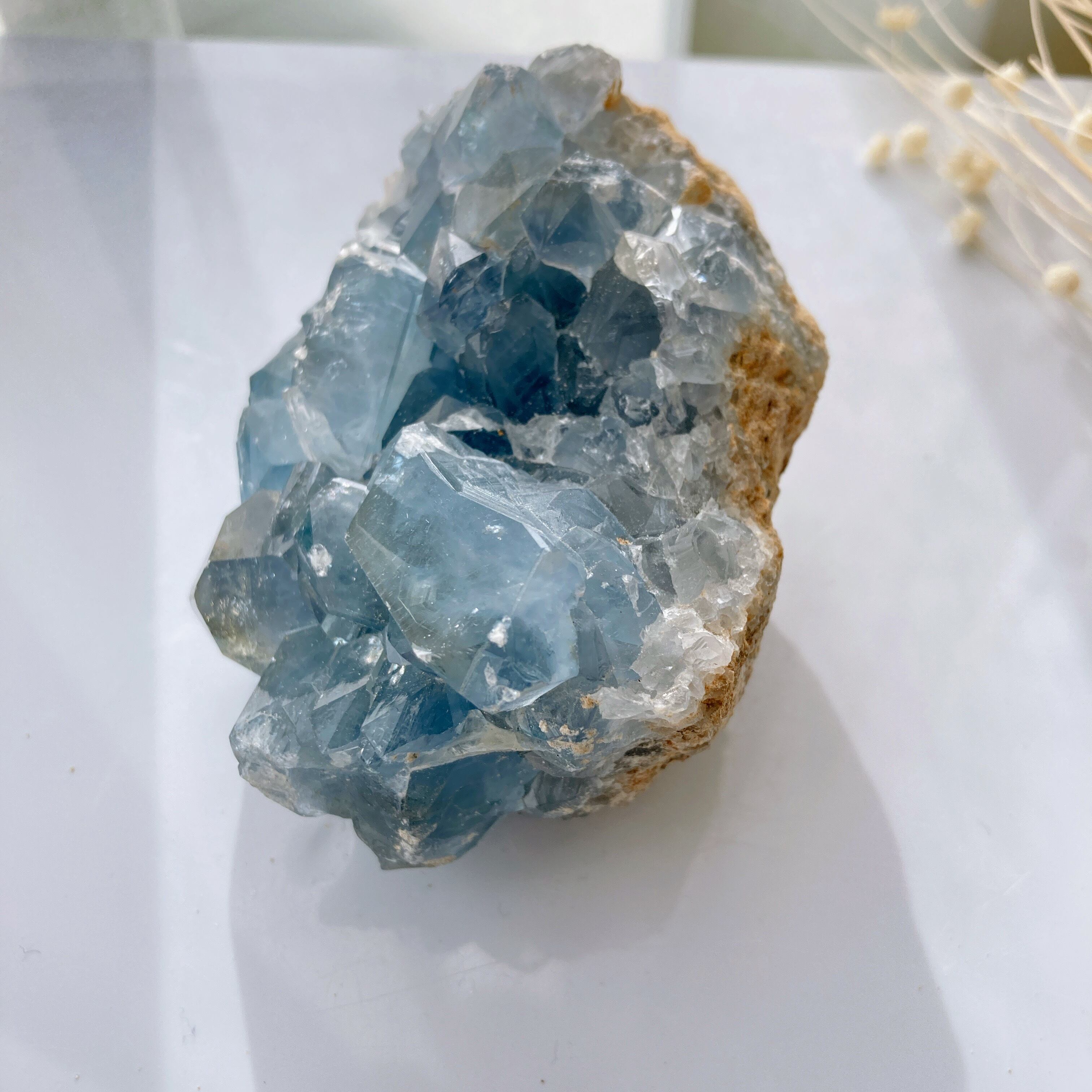 天青石という、青く晴れた空を連想させる和名を持つ、美しいスカイブルーのセレスタイト。ラテン語で「天国のような」という意味も持っています。