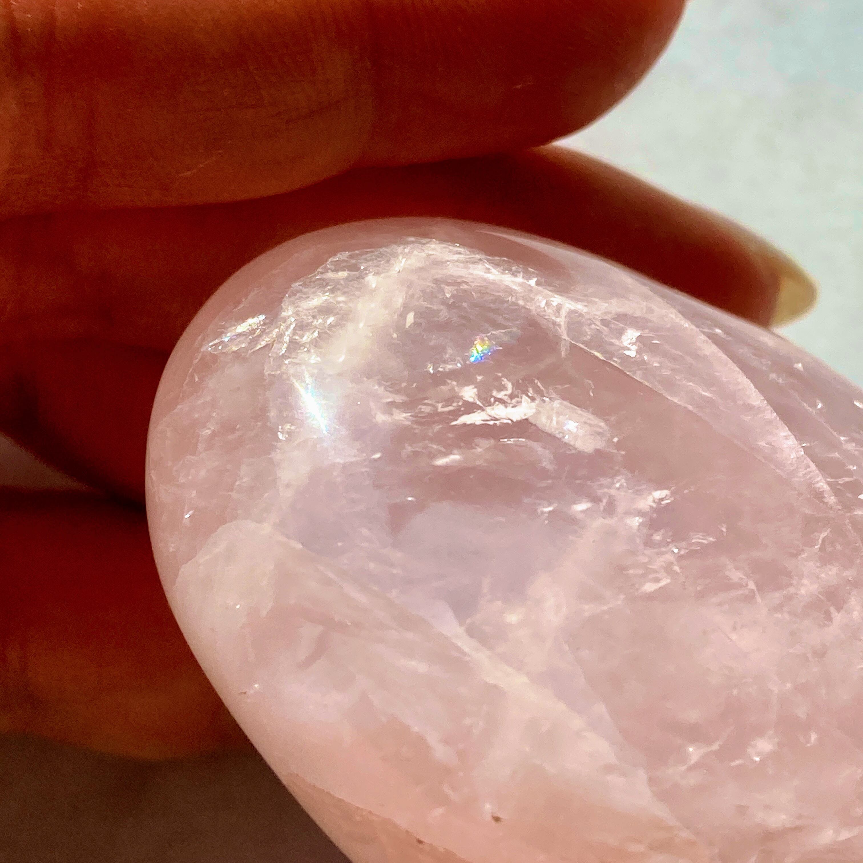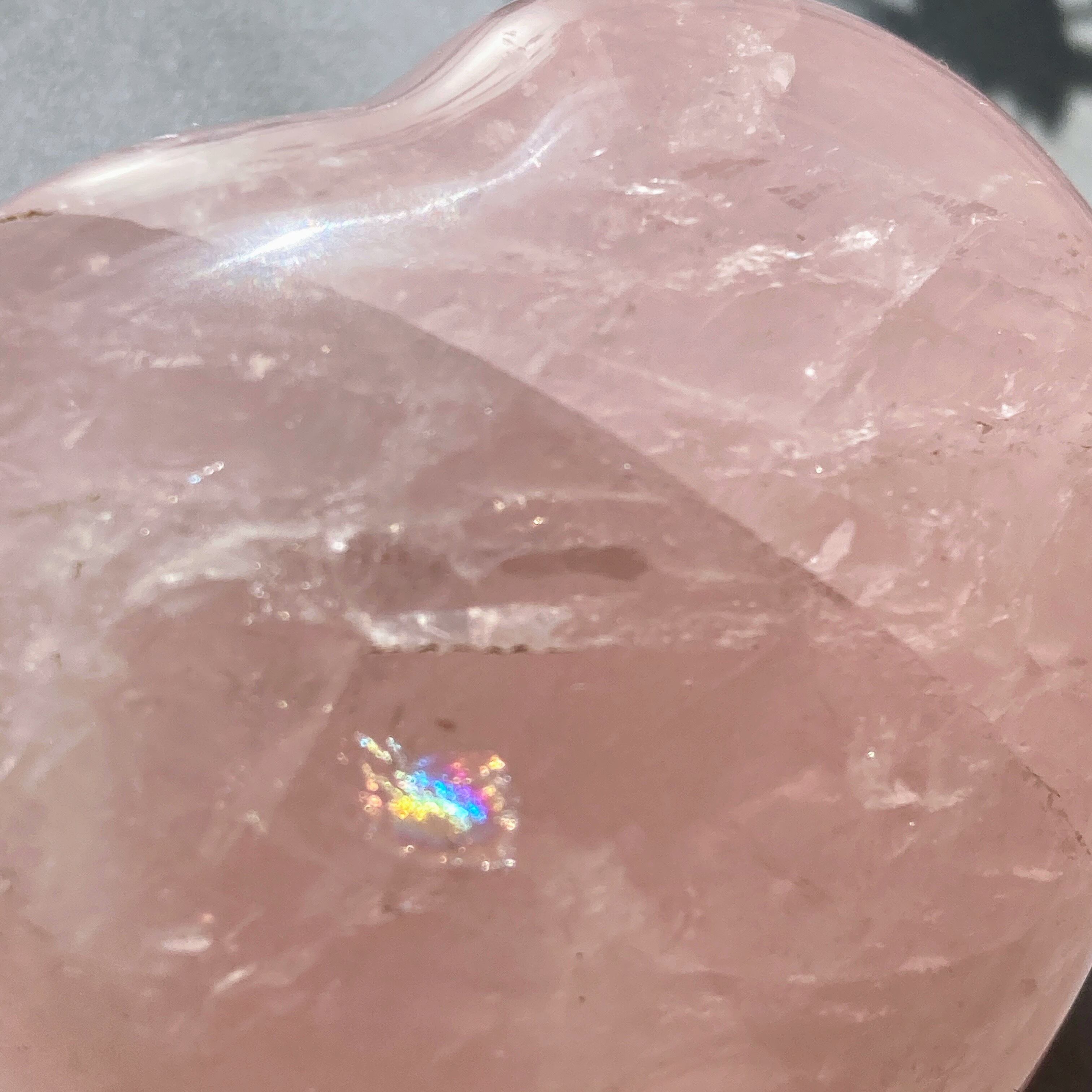 【高品質】ローズクォーツ ハート タンブル 【虹入り】