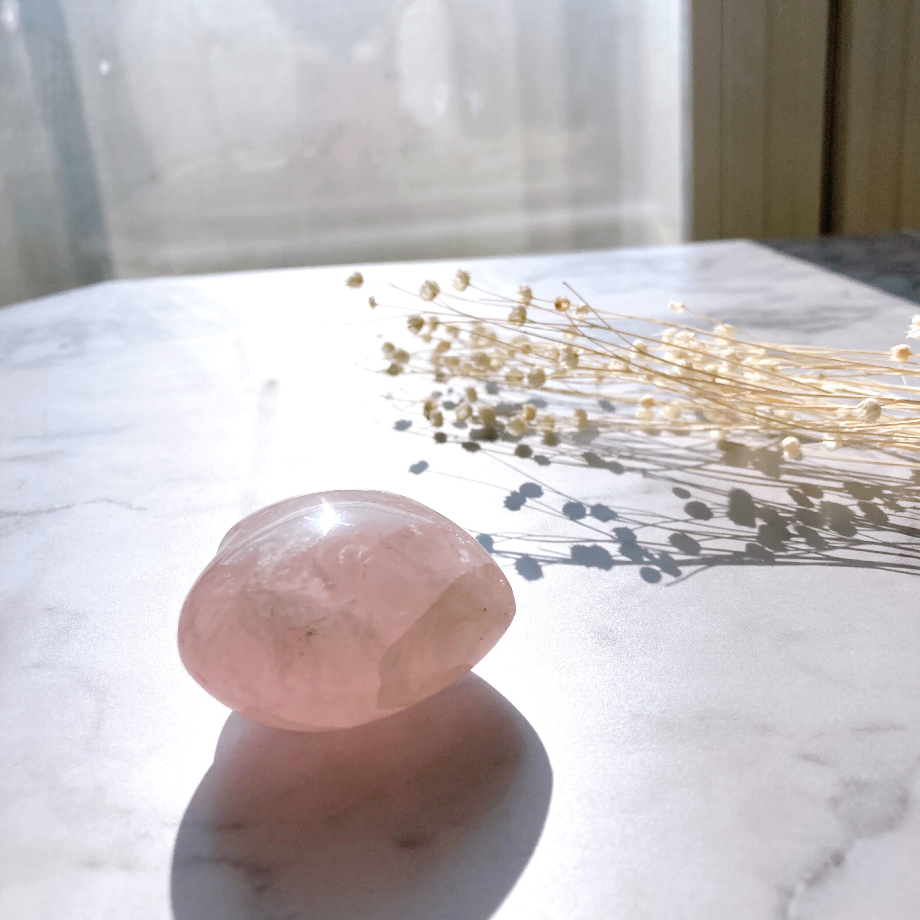 ぷっくりハートの形が可愛いローズクォーツのタンブルです。