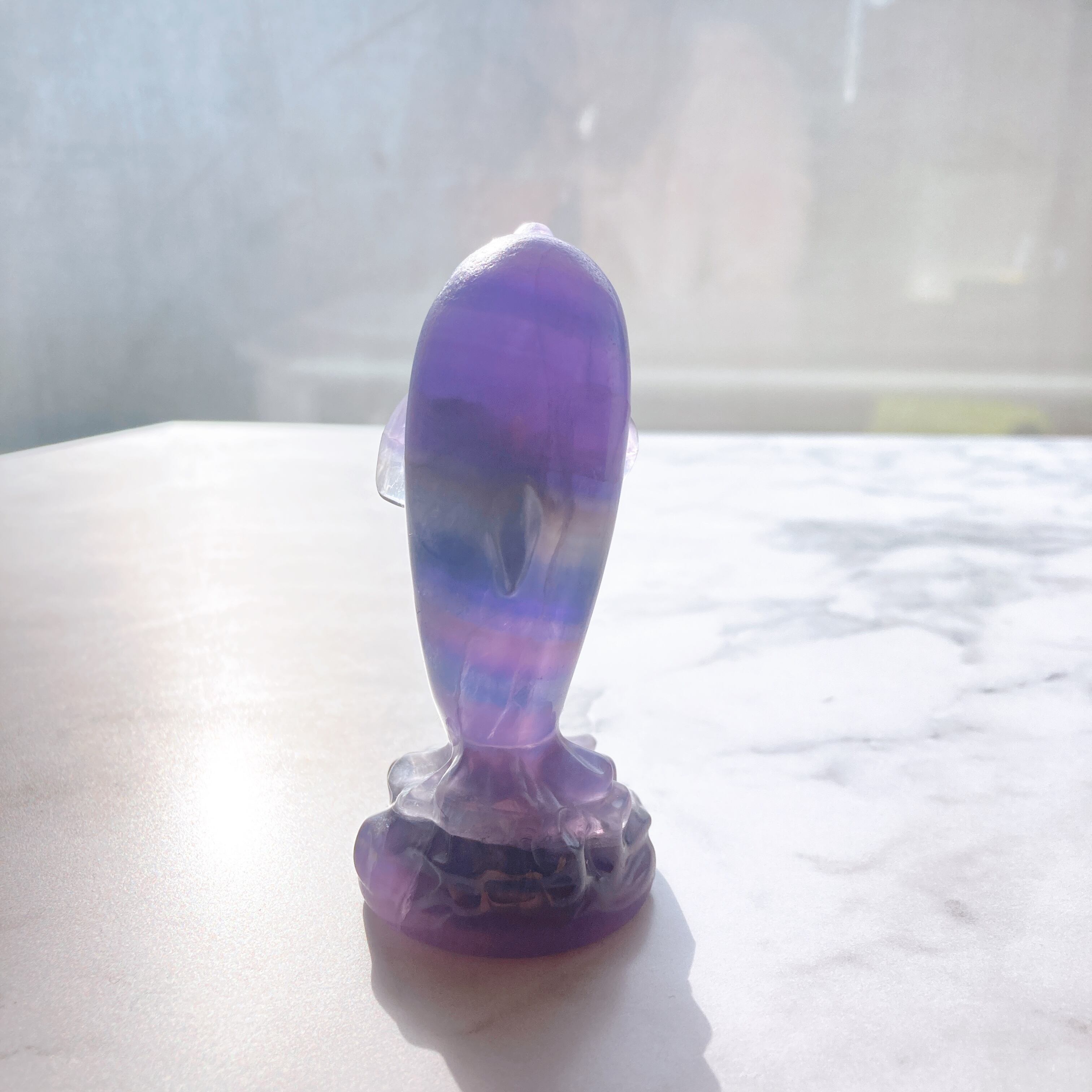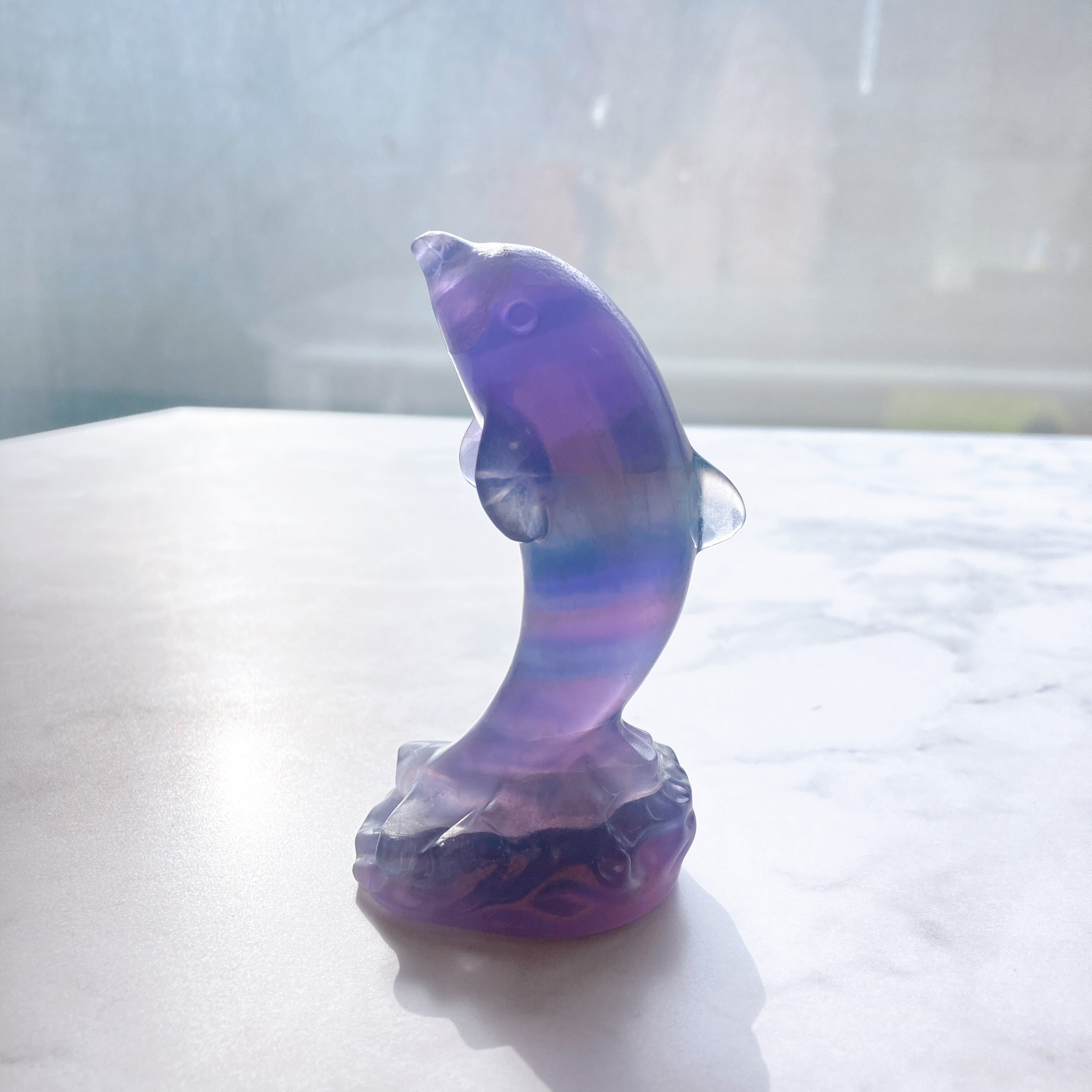 パープル、ブルー、グリーンのグラデーションが大変美しい、イルカのレインボーフローライト。