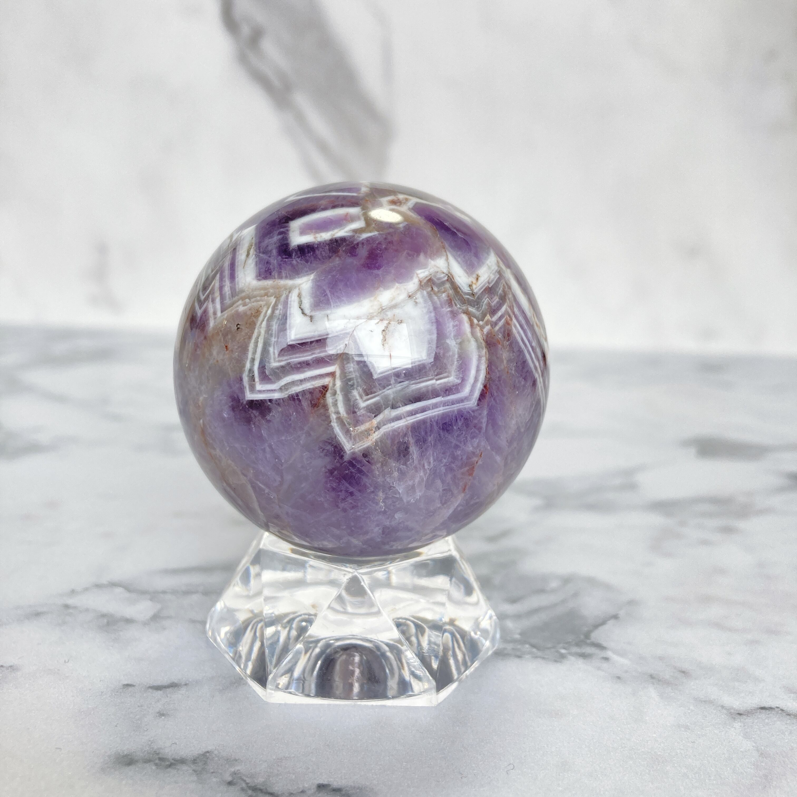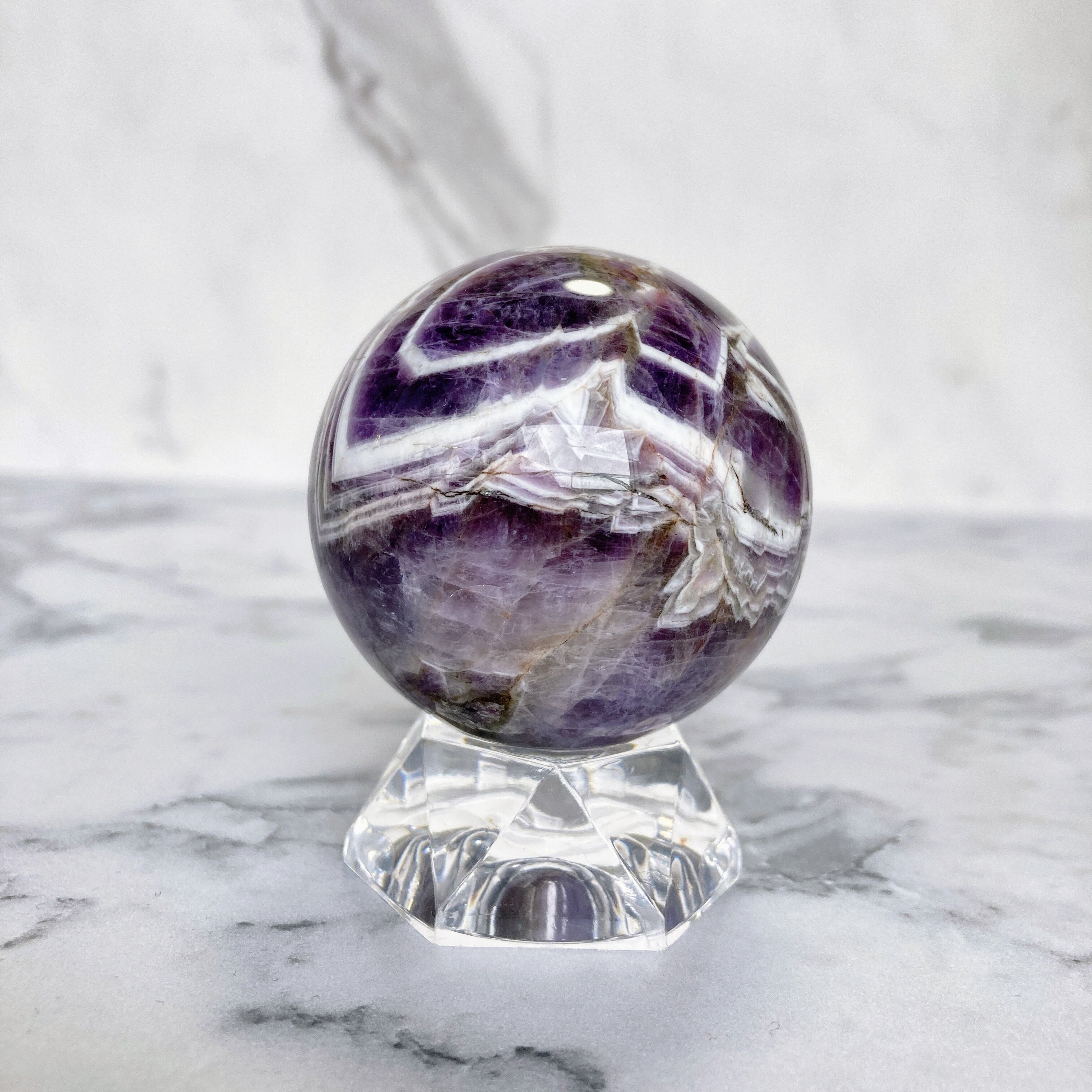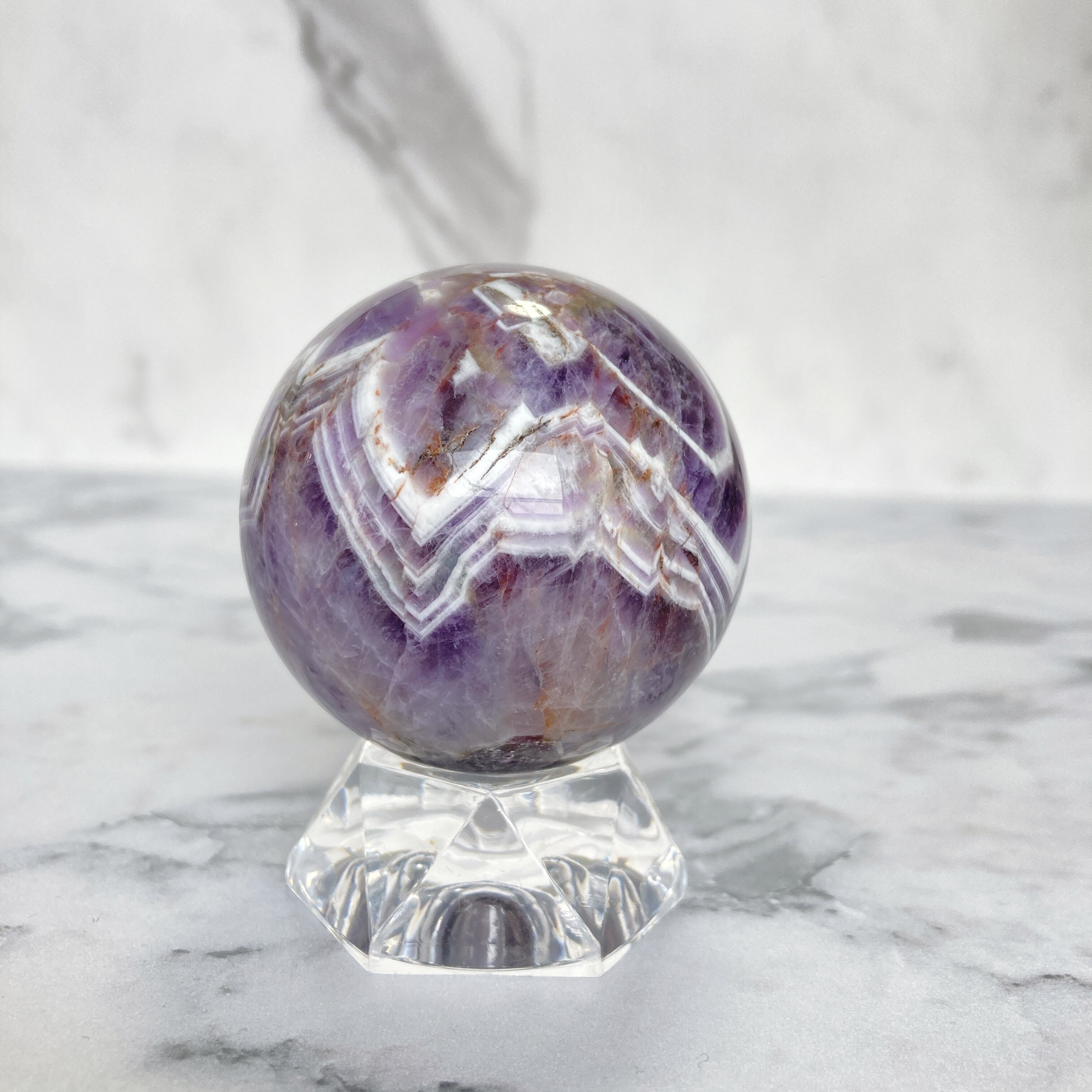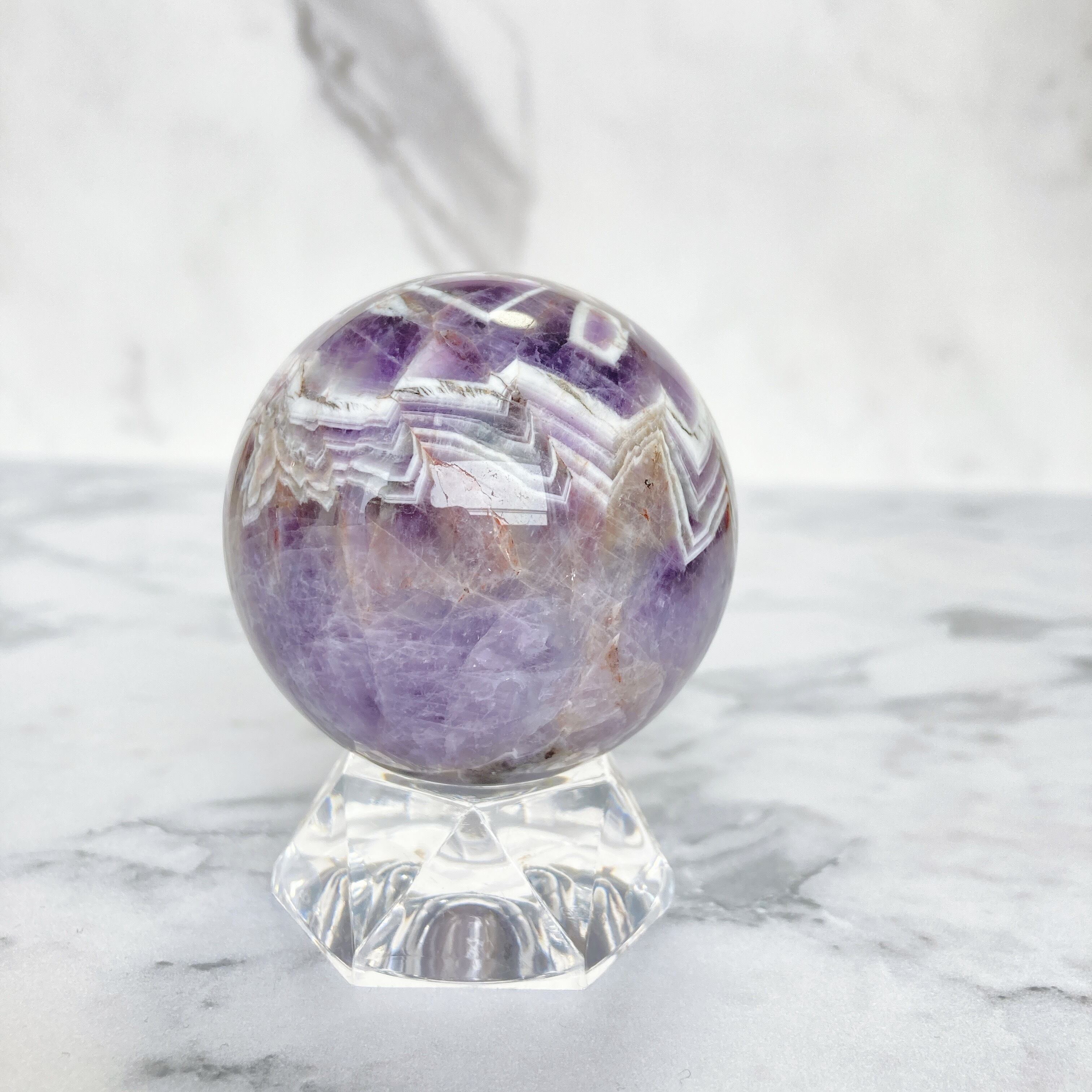 ドリームアメジスト(シェブロンアメジスト) スフィア 台座付き