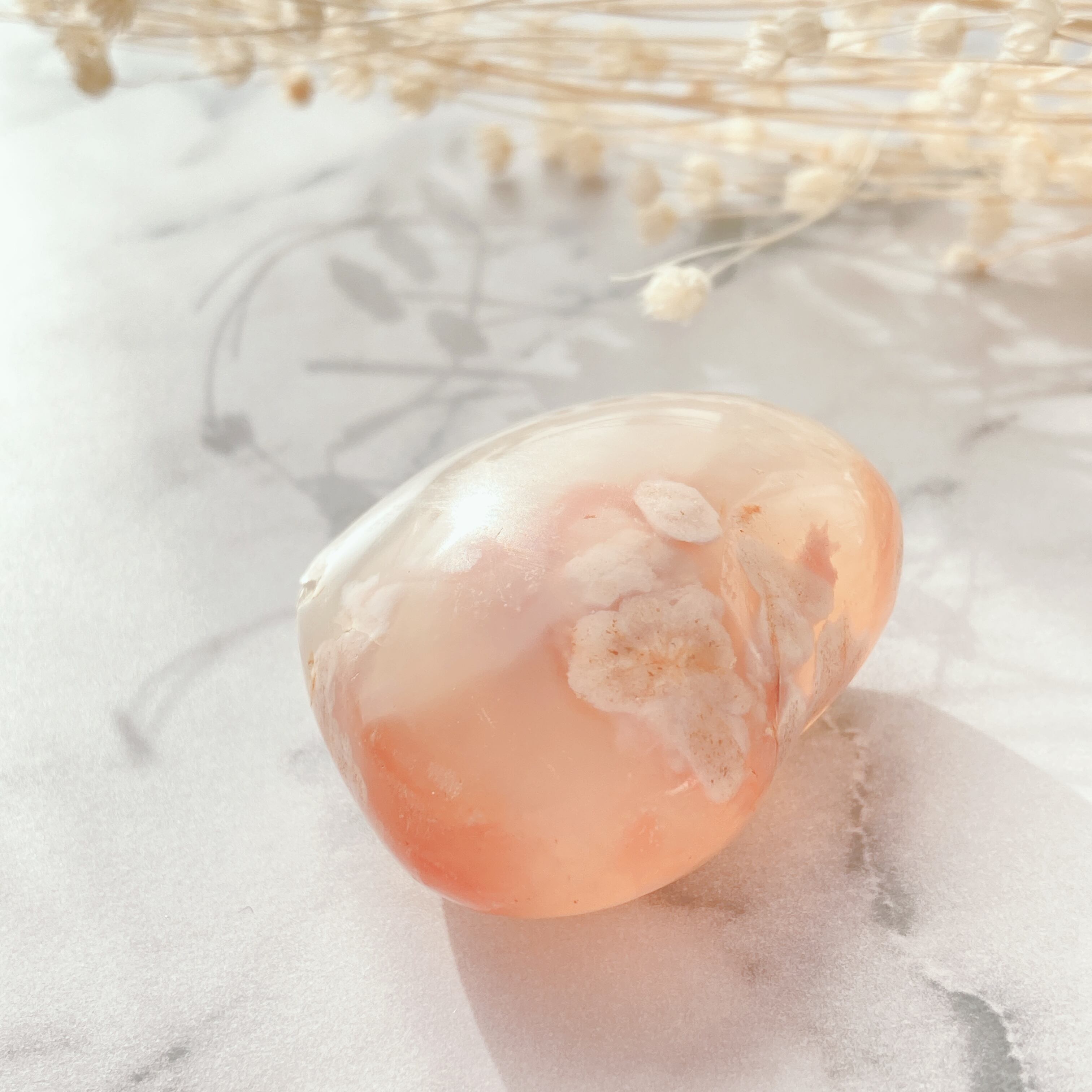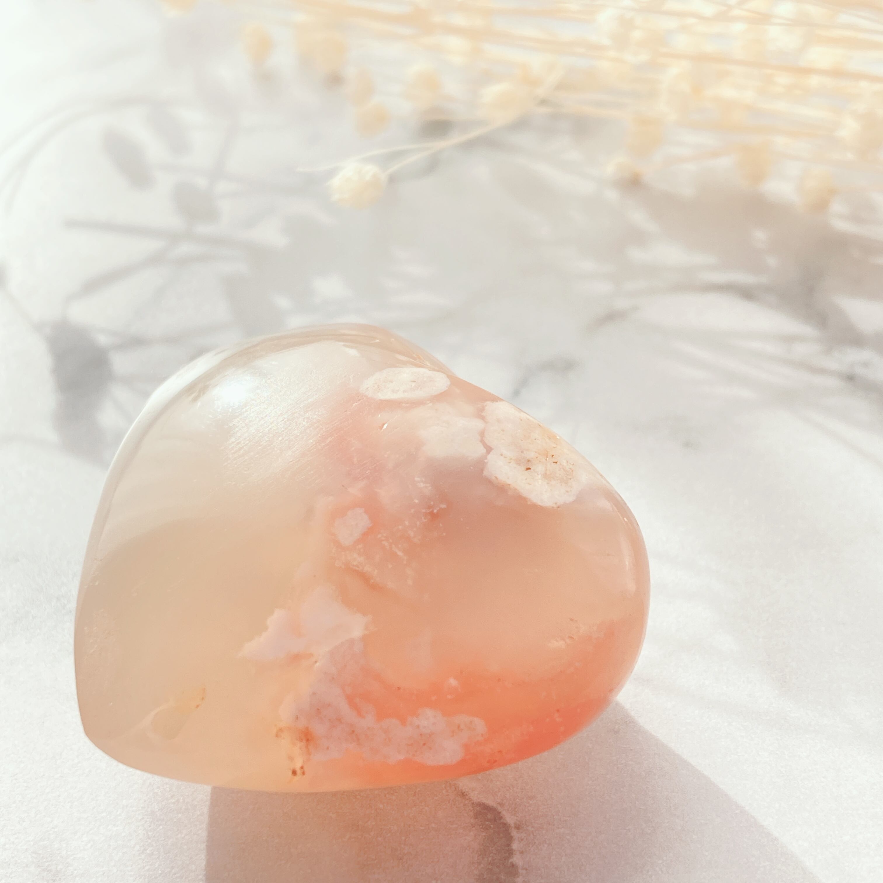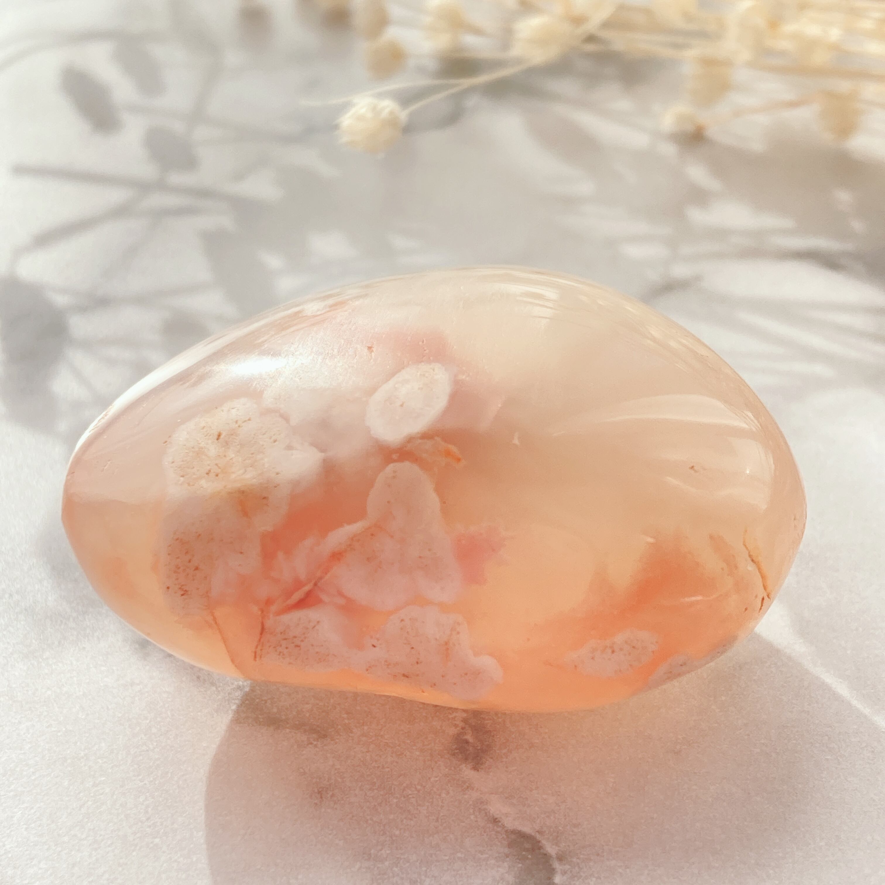 チェリーブロッサムアゲートはこれらの効果はもちろんのこと、特に愛情に関する願いがとても得意だと言われています。