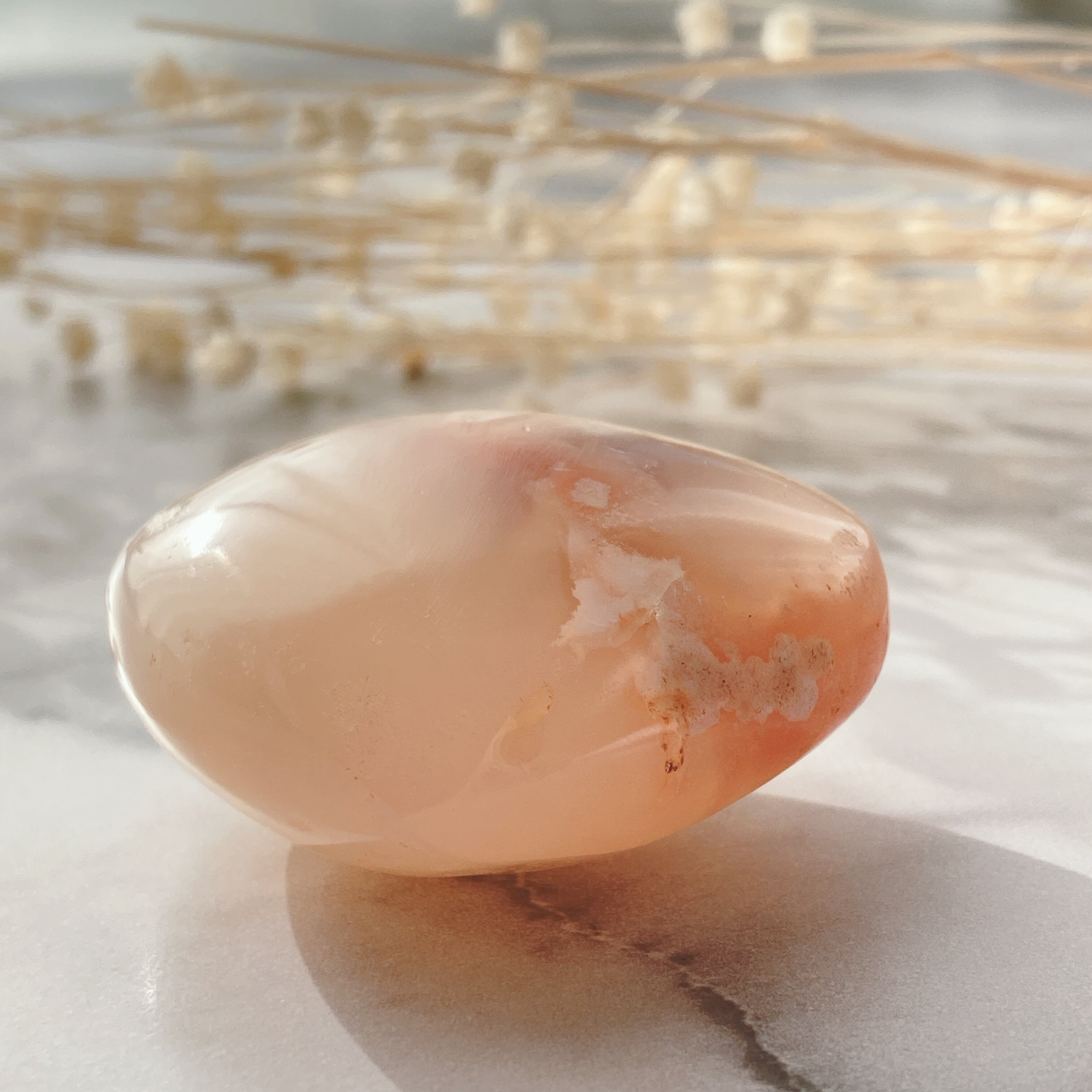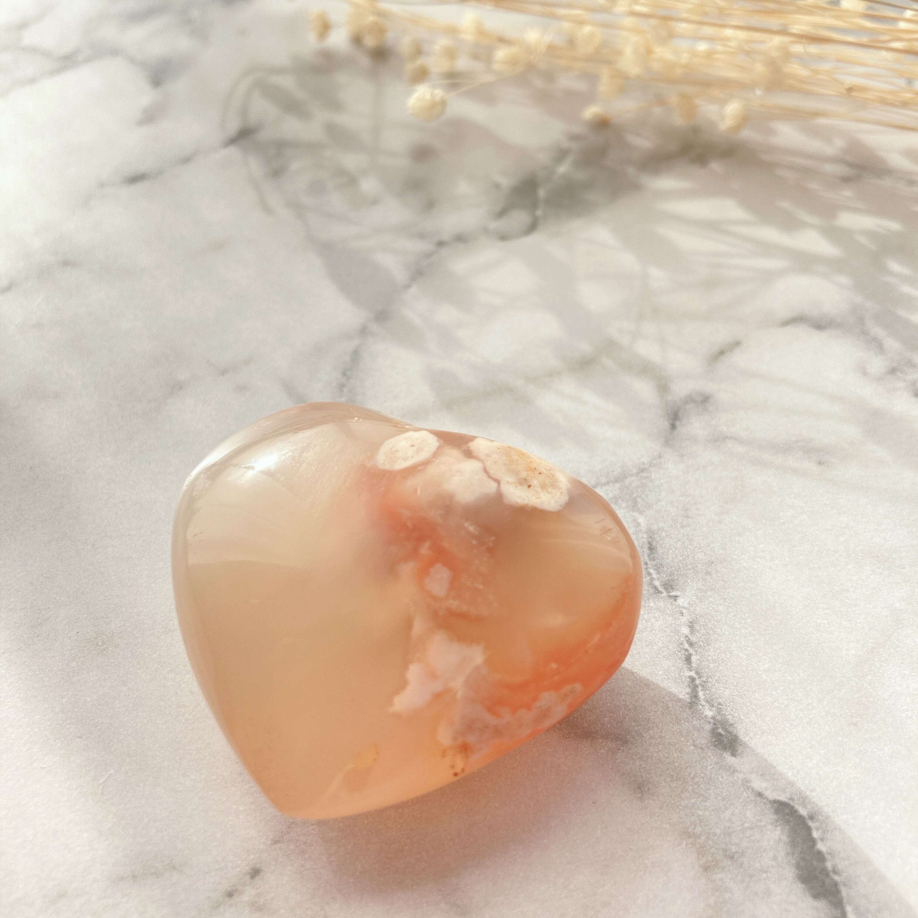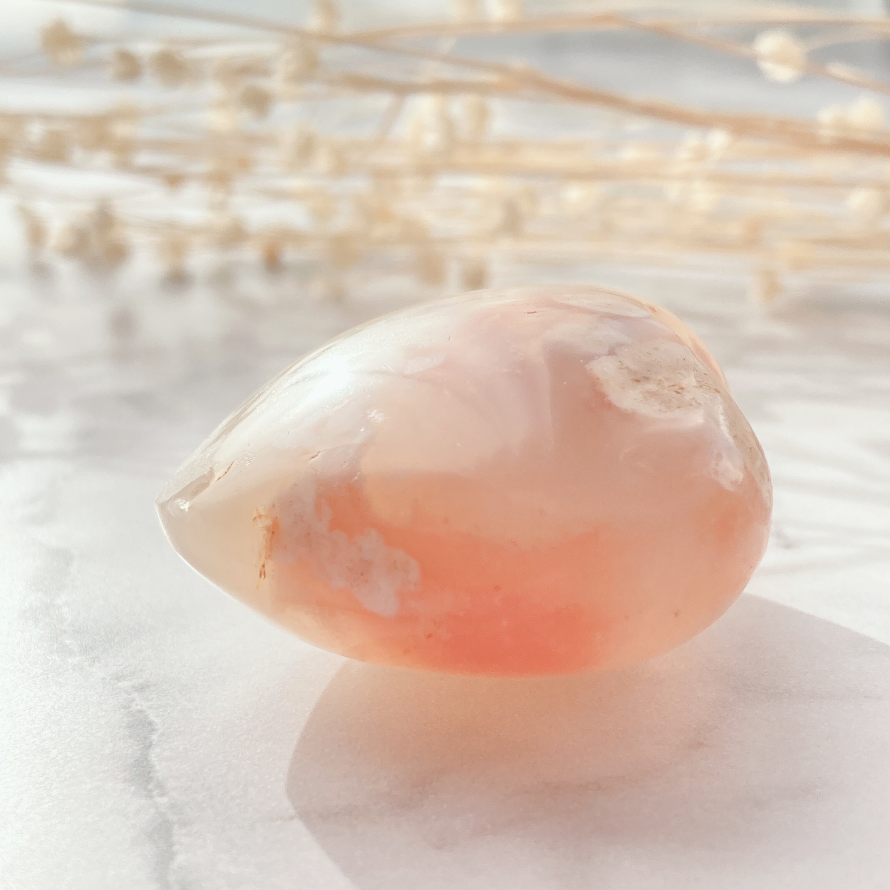 チェリーブロッサムアゲートはこれらの効果はもちろんのこと、特に愛情に関する願いがとても得意だと言われています。