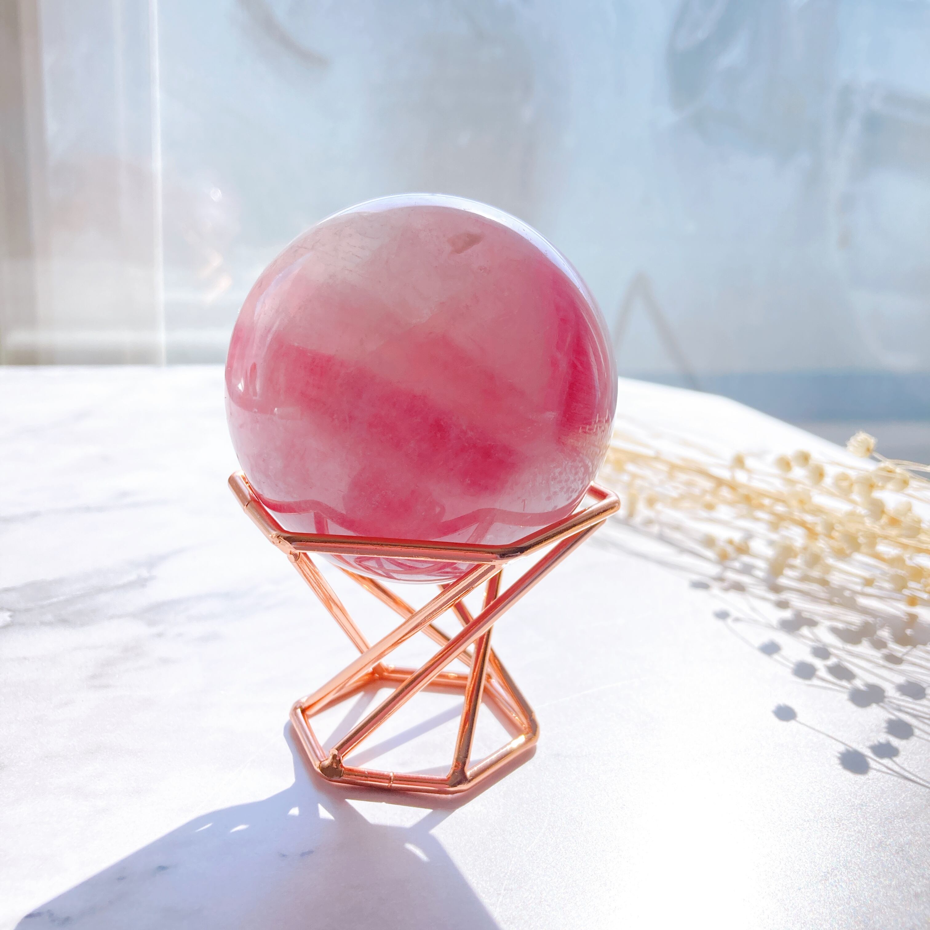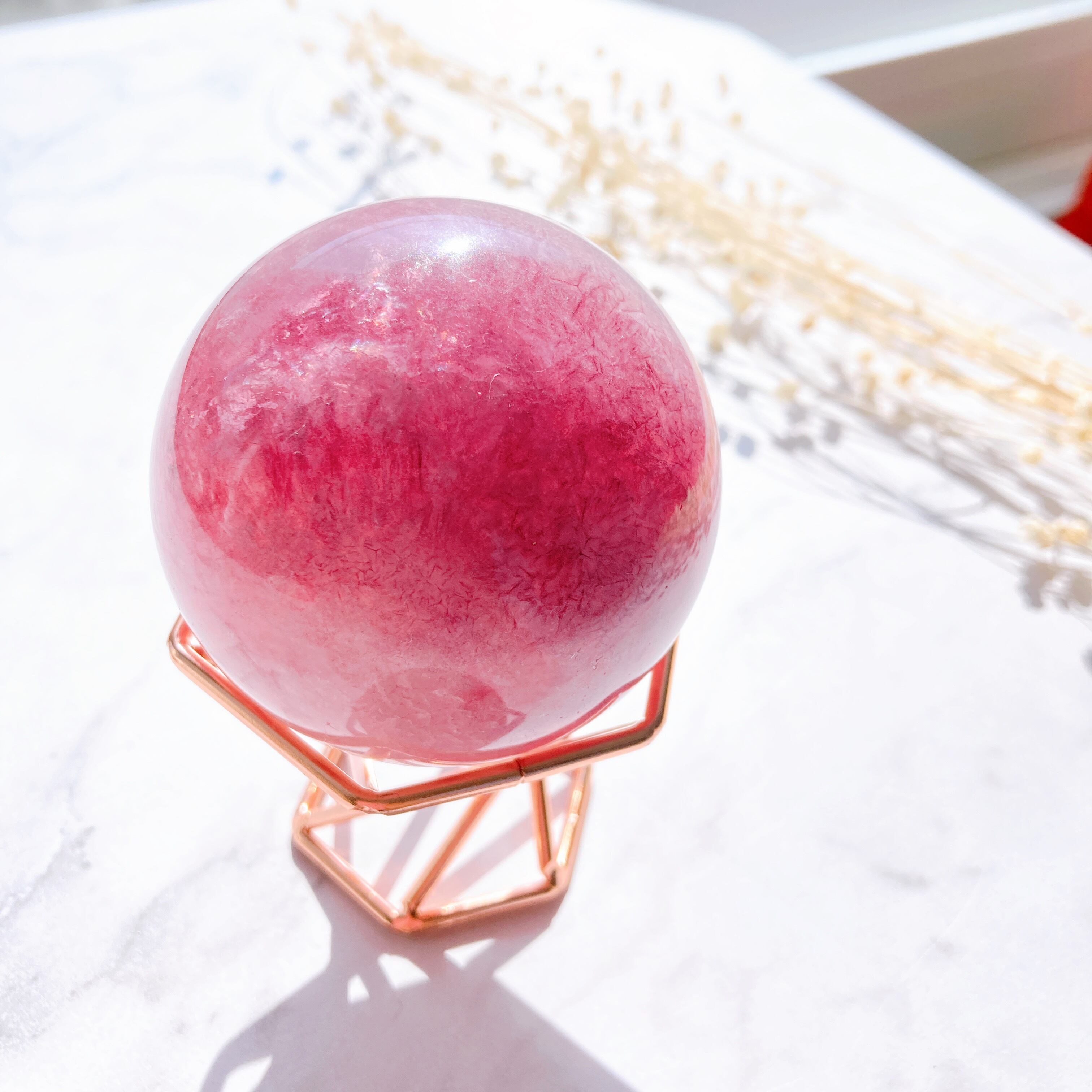 ピンクパープル、ホワイトのフローライトスフィアです。